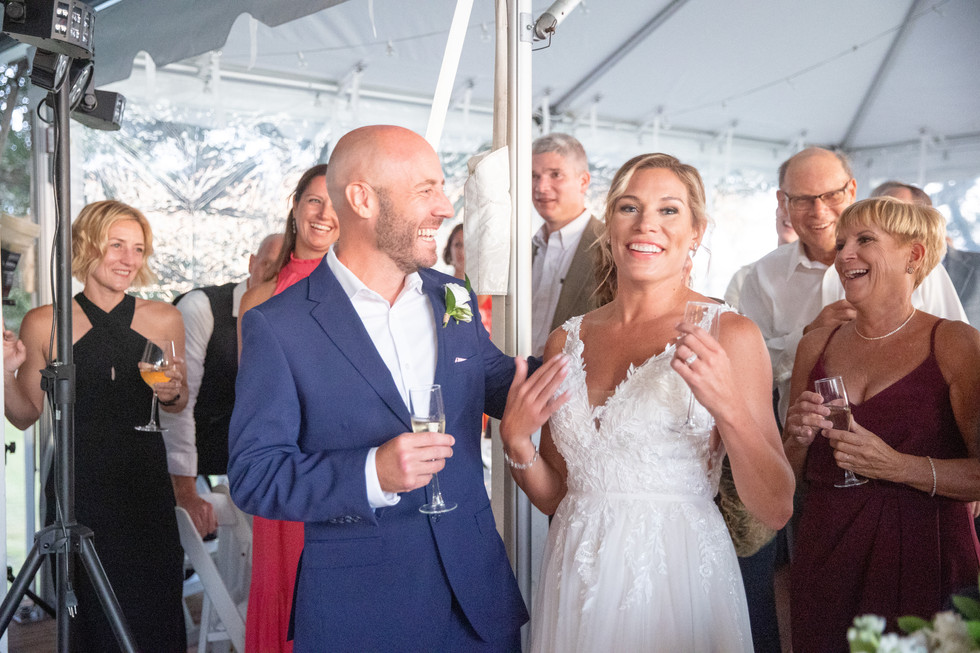 What a gorgeous golf course wedding at the Nags Head Golf Links. Kelly was such a stunning bride who loved having fun. They chose white and green as their colors and it was so elegant and clean. From the gorgeous wooden arch adorned with flowers by the water to the spectacular bouquets and centerpieces, Flower Girls did an amazing job. From the fiery sunset to the warm sunny day, the weather was perfect. DJ Bruce had everyone including the bride and groom dancing their hearts out on the dance floor. What a great wedding day for Kelly and Andrew!